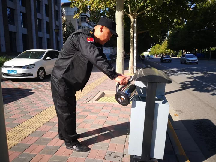 為了防止火勢蔓延,保安員及時通知執(zhí)勤的同事攜帶滅火器,在等待過程中,將垃圾桶附近的易燃品進行了轉(zhuǎn)移。同事趕到后,及時果斷對火源進行了撲滅。