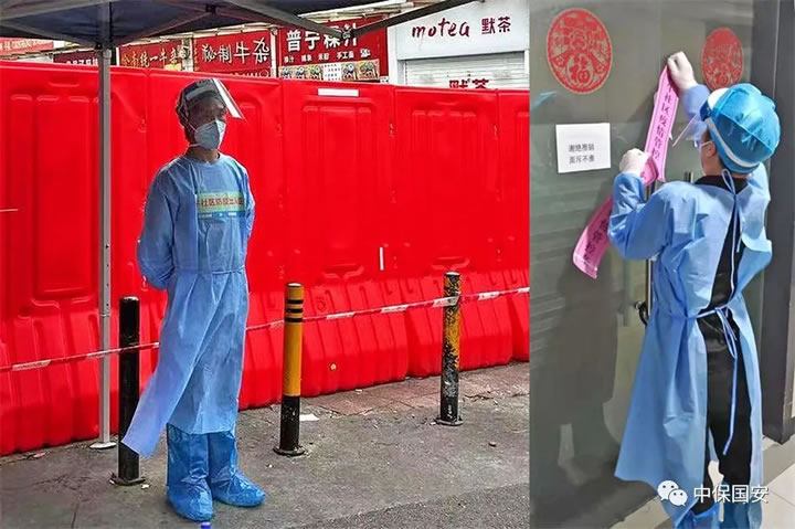 中保國安抗疫團(tuán)隊(duì)在負(fù)責(zé)的每一個(gè)封控區(qū)、管控區(qū)、防范區(qū),認(rèn)真開展樓棟封控、入口管控、核酸檢測協(xié)助、信息核驗(yàn)、秩序維持、物資運(yùn)轉(zhuǎn)等各方面工作。