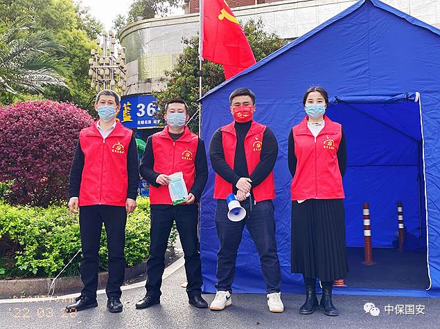 中保國安集團(tuán)積極承擔(dān)起企業(yè)的社會(huì)責(zé)任,在社區(qū)封控管理、高速路口查驗(yàn)、隔離酒店護(hù)衛(wèi)等方面開展了大量工作,做出了積極的貢獻(xiàn),尤其是集團(tuán)黨支部,組織得力,沖鋒在前,充分發(fā)揮了黨員的先鋒模范作用,以主動(dòng)擔(dān)當(dāng)?shù)膶?shí)際行動(dòng)踐行了共產(chǎn)黨員的使命,在疫情防控各個(gè)現(xiàn)場留下了令人矚目的“紅色風(fēng)景線”。