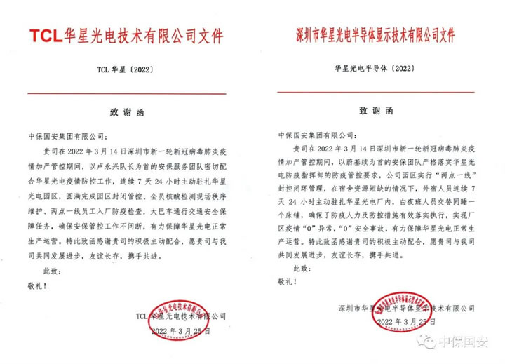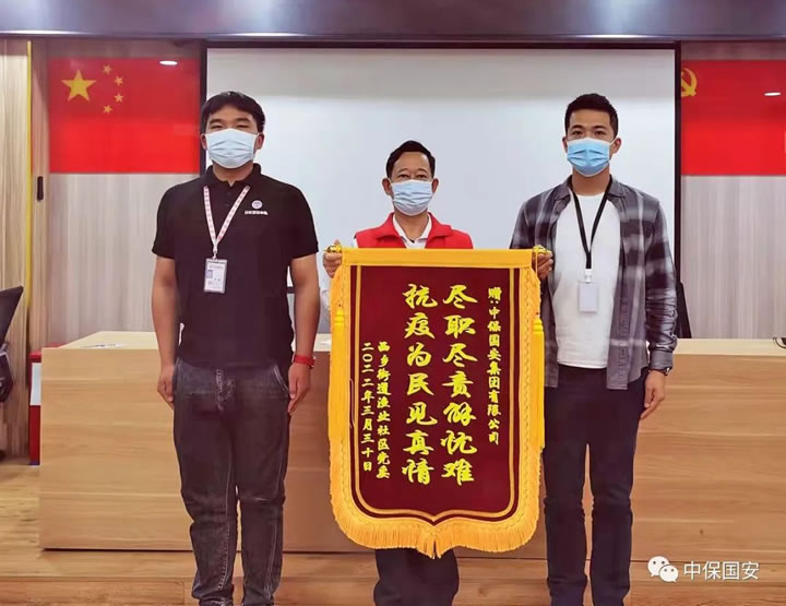 在這些艱難的日子里,抗疫一線人員最是辛苦。所有逆行者的寸點(diǎn)微光,匯聚成同心抗疫的萬丈光芒,傳遞出溫暖和力量。隨著疫情的逐漸趨穩(wěn),隨著封控的逐漸解除,中保國安集團(tuán)在各個(gè)社區(qū)的抗疫團(tuán)隊(duì)陸續(xù)完成任務(wù)、結(jié)束使命,返回原有工作崗位,在撤離前后,來自社區(qū)、居民、客戶單位和政府部門的感謝信、錦旗紛至沓來,都在表達(dá)相同的意思——“辛苦了,謝謝你”。